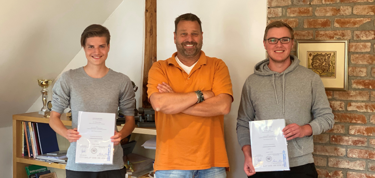 Wir freuen uns daher sehr, dass uns - nach Marc im vergangenen Jahr - nun auch Thomas und Jakob nach erfolgreich abgeschlossener Ausbildung zum Vermessungstechniker, im Team erhalten bleiben.