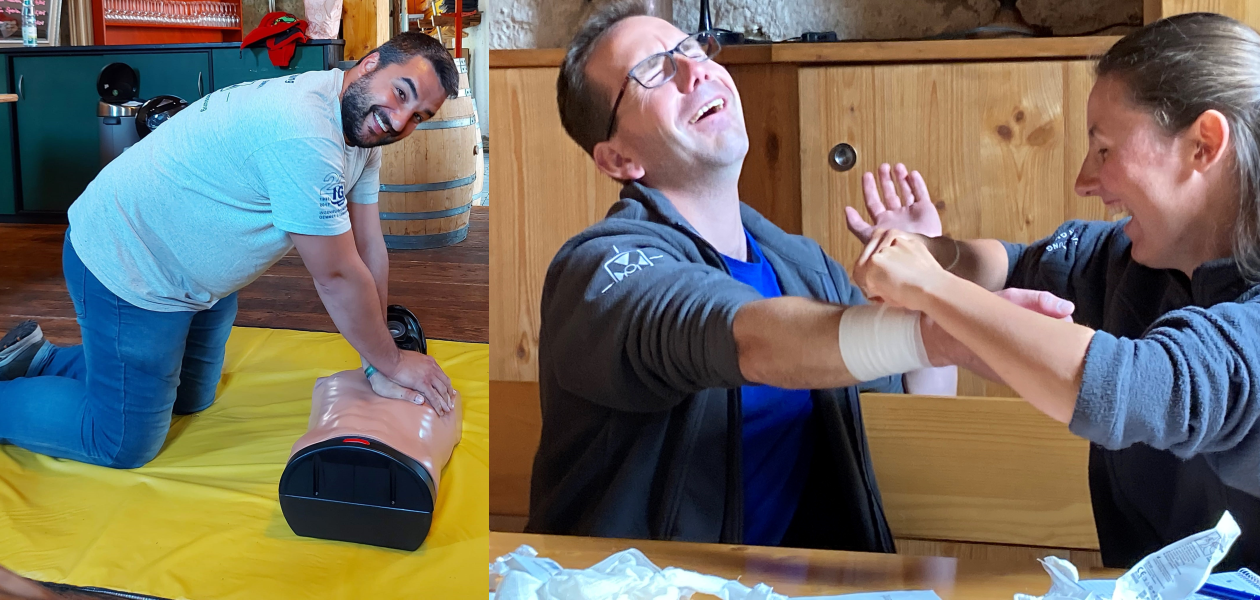 Sichtlich viel Spaß hatten die Kolleg*innen am Standort Werneck bei der turnusmäßigen Auffrischung des Erste-Hilfe-Kurses.