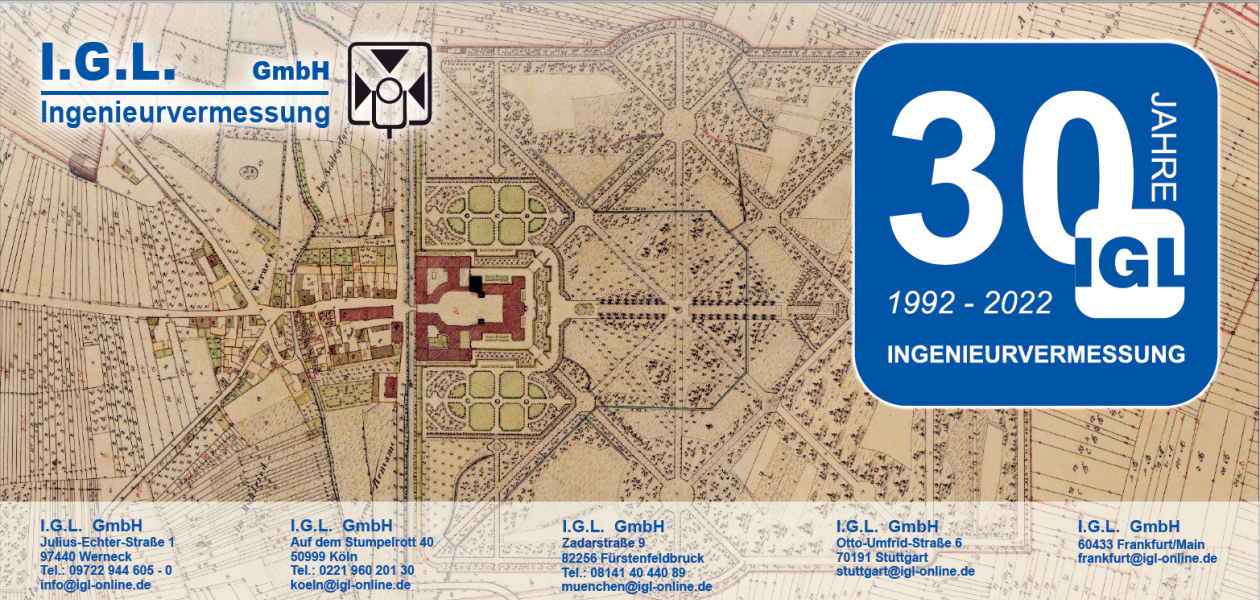 Nicht nur, dass unsere langjährigen Niederlassungsleiter neue Aufgaben als geschäftsführende Gesellschafter bzw. Prokurist übernommen haben. Auch unsere Firmierung hat sich an unsere schon seit vielen Jahren verwendete Kurzform angepasst. Nun wurde (auch offiziell) aus der Ingenieurgesellschaft Gemmer und Leber mbH die I.G.L. GmbH Ingenieurvermessung!