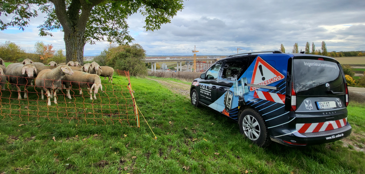 Dies oder zumindest ähnliches scheinen sich die Schafe beim Anblick unseres Vermessungs-Fahrzeugs gedacht zu haben. ;-)